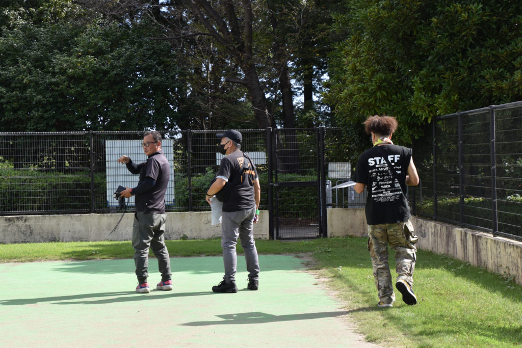 設営場所を確認したら、スタッフのみんなと設営スタートです