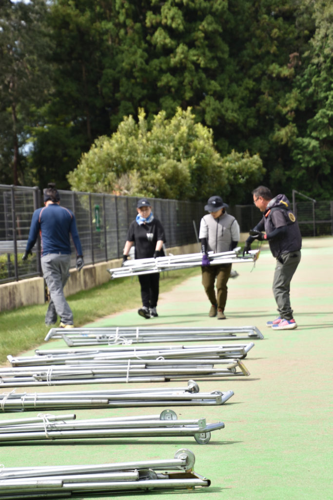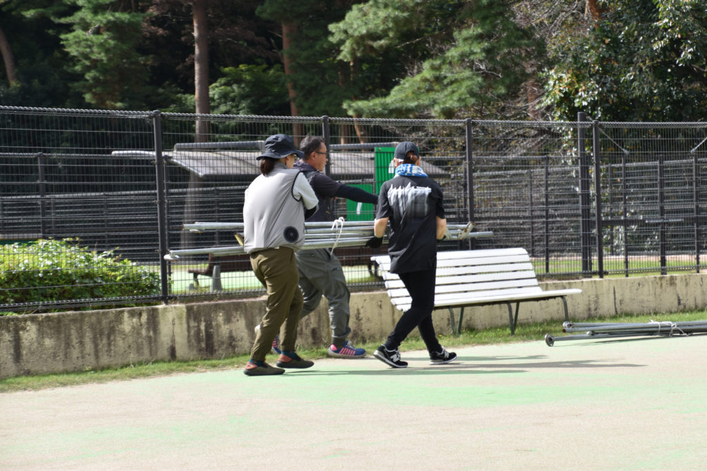 9月下旬とはいえ、まだまだ残暑で水分と休憩をとりながら安心安全の設営スタートです